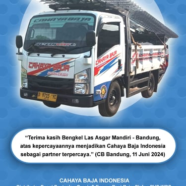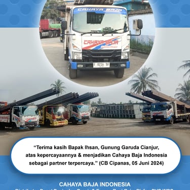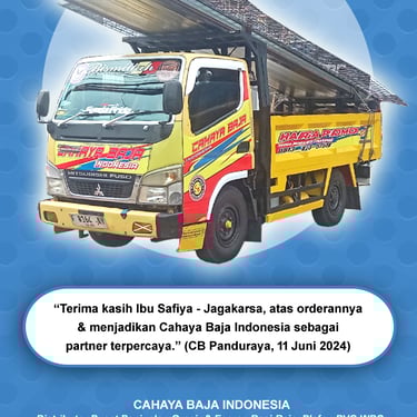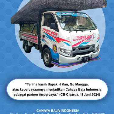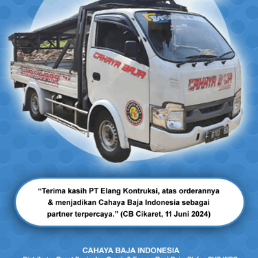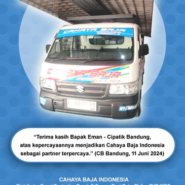 Saya sangat puas dengan pelayanan dari Cahaya Baja Indonesia. Harga terbaik, pelayanan cepat, dan pasti dapat cashback!