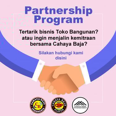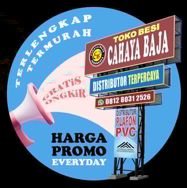 Cahaya Baja Indonesia adalah distributor pusat penjualan grosir & eceran bahan bangunan terlengkap, termurah, & terpercaya. Kami melayani pengiriman se-Indonesia, gratis ongkir, dengan harga promo setiap hari, dan semua pelanggan pasti dapat cashback!